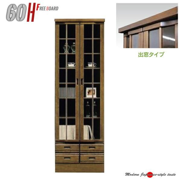 本棚 扉付き 60 フリーボード 60幅 サイドボード ガラス扉 キャビネット 無垢 開き扉 和風 食器棚 日本製 カップボード 完成品 高級品 大川家具 北欧