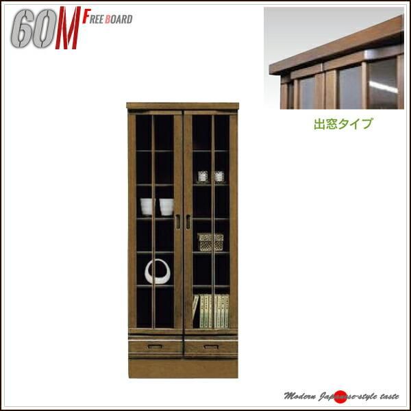 ミドルボード 本棚 60 扉付き フリーボード 60幅 サイドボード ガラス扉 キャビネット 無垢 開き扉 和風 食器棚 日本製 カップボード 高級品 北欧 大川家具