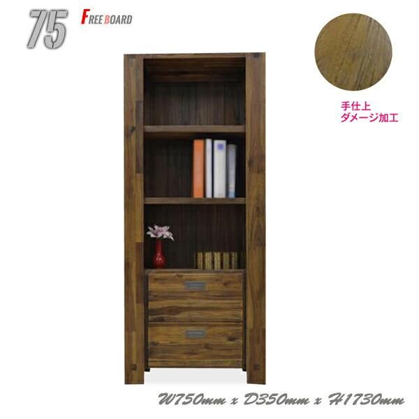 本棚 幅75 書棚 フリーボード 多目的 引出し付き 木製 収納シェルフ CD DVD ラック アンティーク ヴィンテージ 高級家具 完成品 北欧 ビンテージ