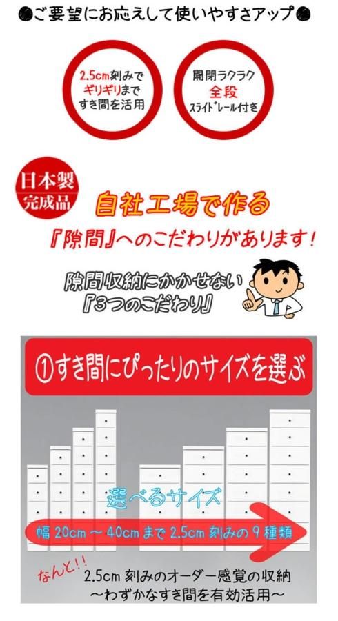 スキマを有効活用できる5cm間隔で選べるすき間家具です。