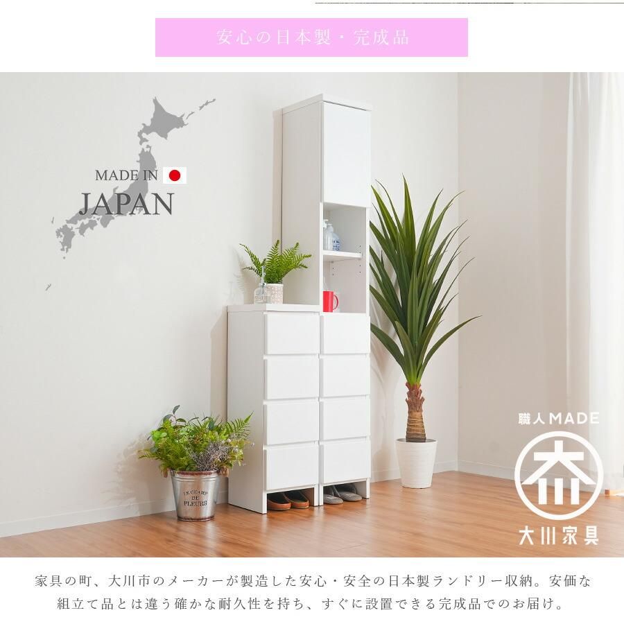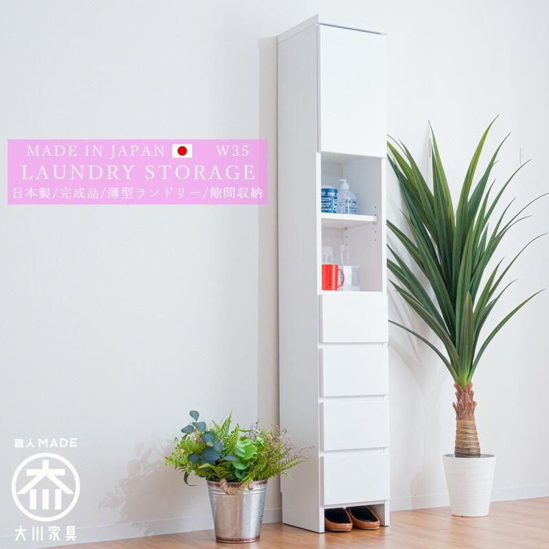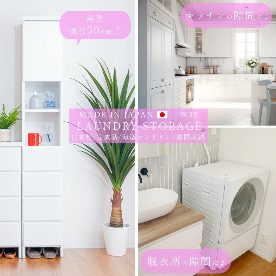 ランドリー収納 ランドリー すき間収納 ランドリーボックス 幅35 サニタリー収納 チェスト 脱衣所 洗面所 家具 完成品 ホワイト 白 大川家具 日本製