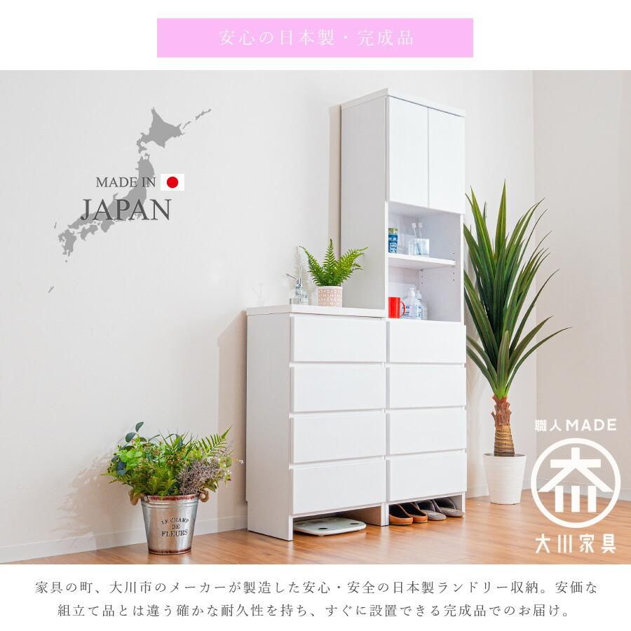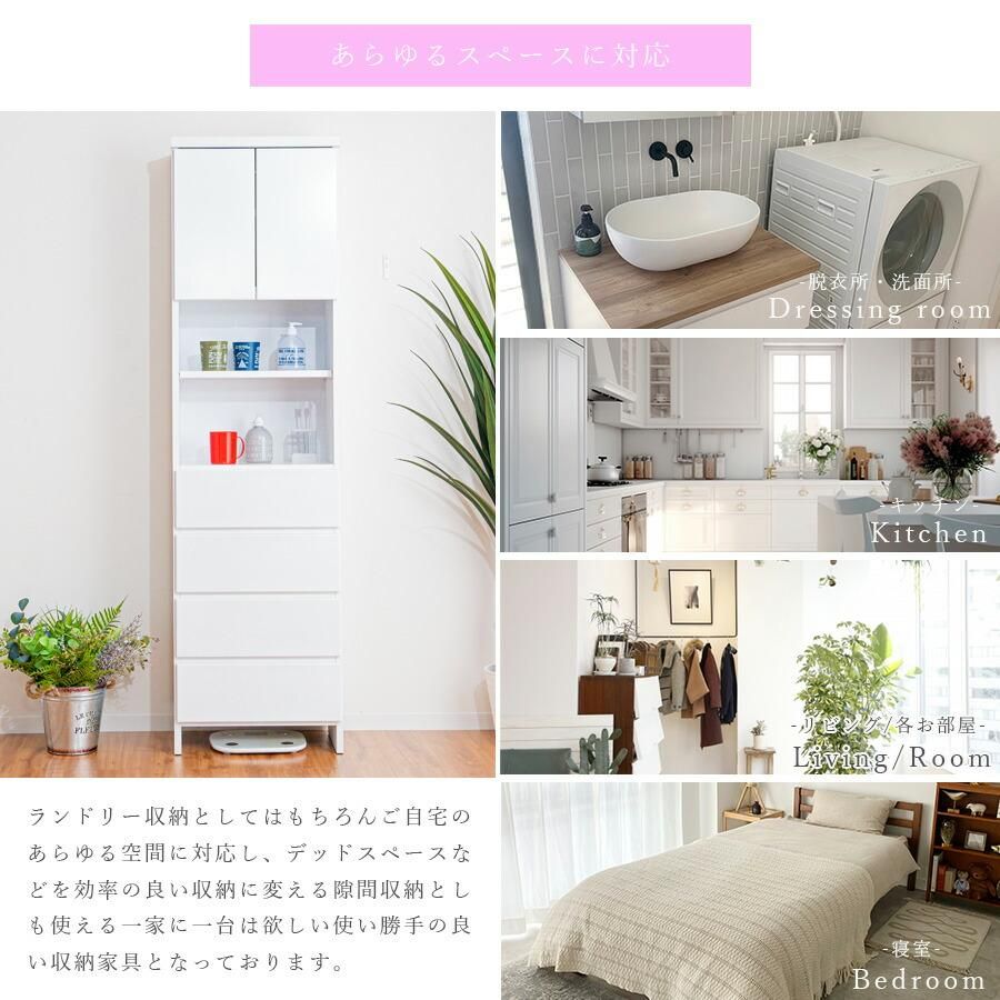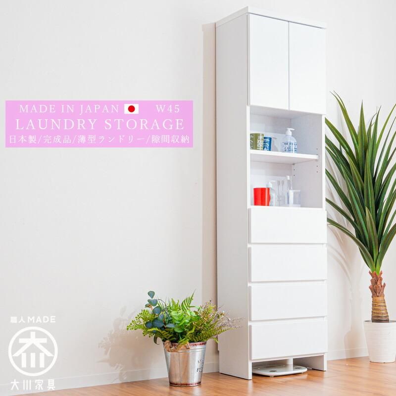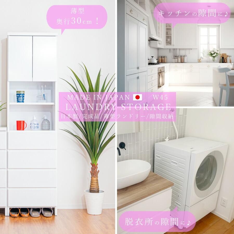 ランドリー収納 ランドリー すき間収納 ランドリーボックス 幅45 サニタリー収納 チェスト 脱衣所 洗面所 家具 完成品 ホワイト 白 大川家具 日本製