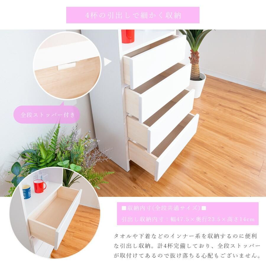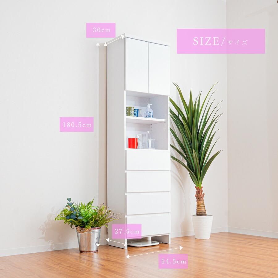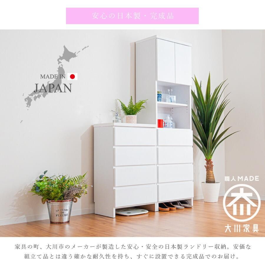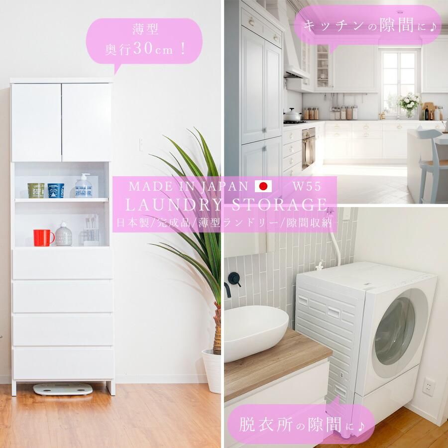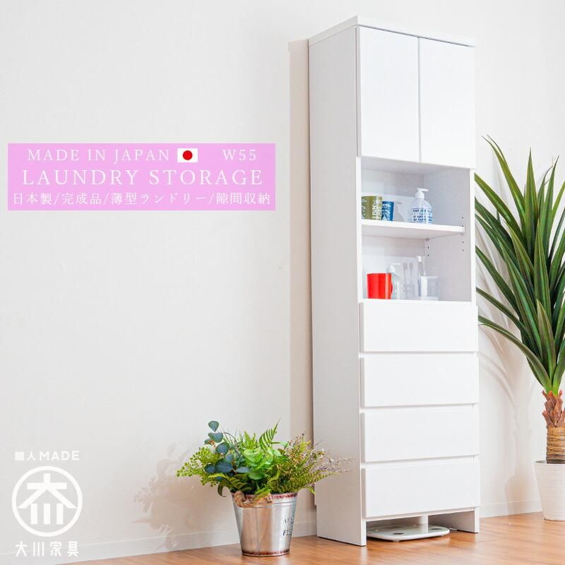 ランドリー収納 ランドリー すき間収納 ランドリーボックス 幅55 サニタリー収納 チェスト 脱衣所 洗面所 家具 完成品 ホワイト 白 大川家具 日本製