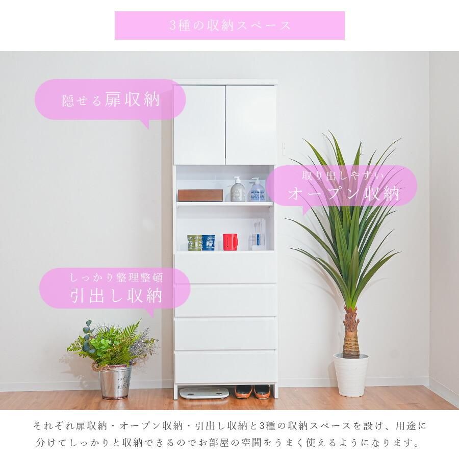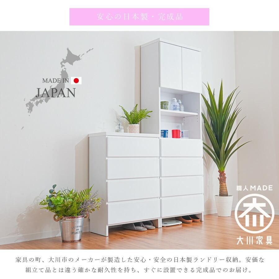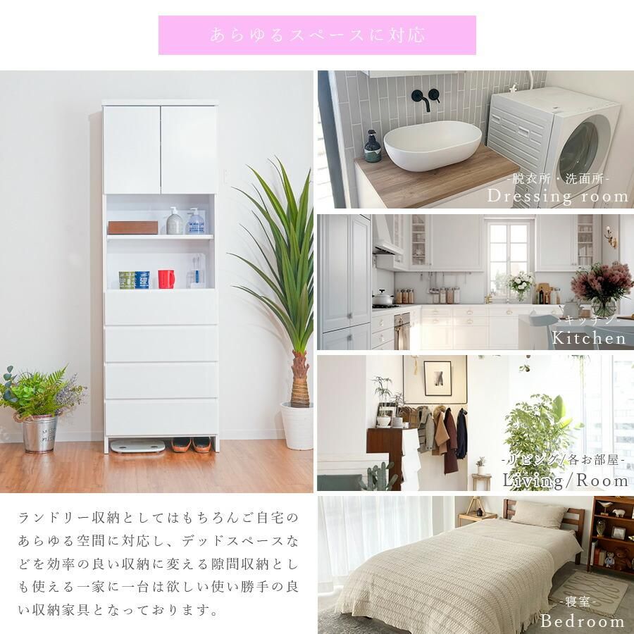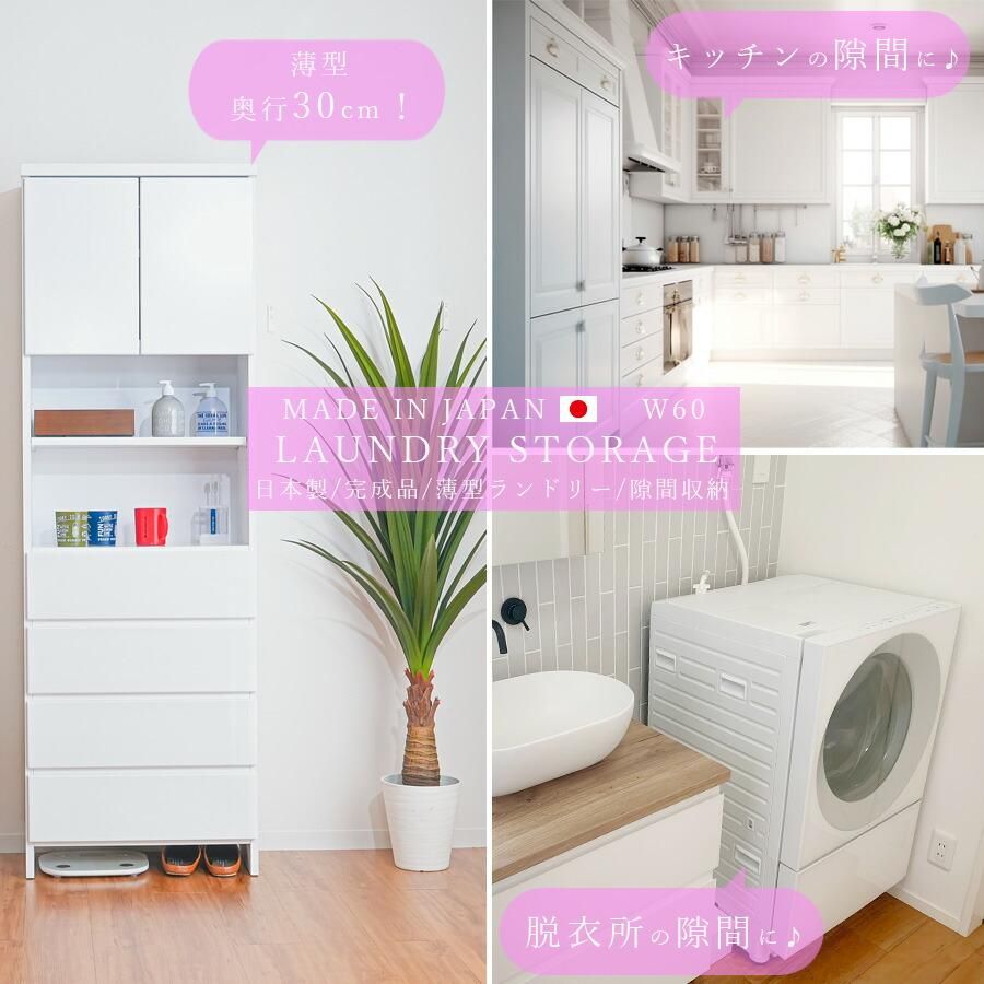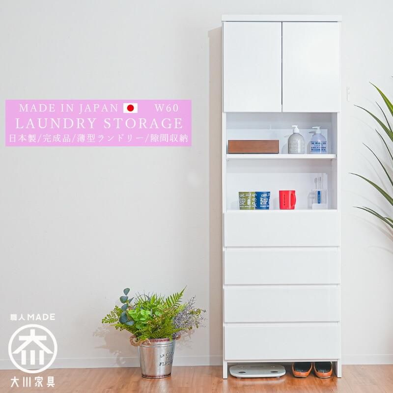 ランドリー収納 ランドリー すき間収納 隙間 ランドリーボックス 幅60 サニタリー収納 チェスト 脱衣所 洗面所 完成品 ホワイト 白 大川家具 日本製