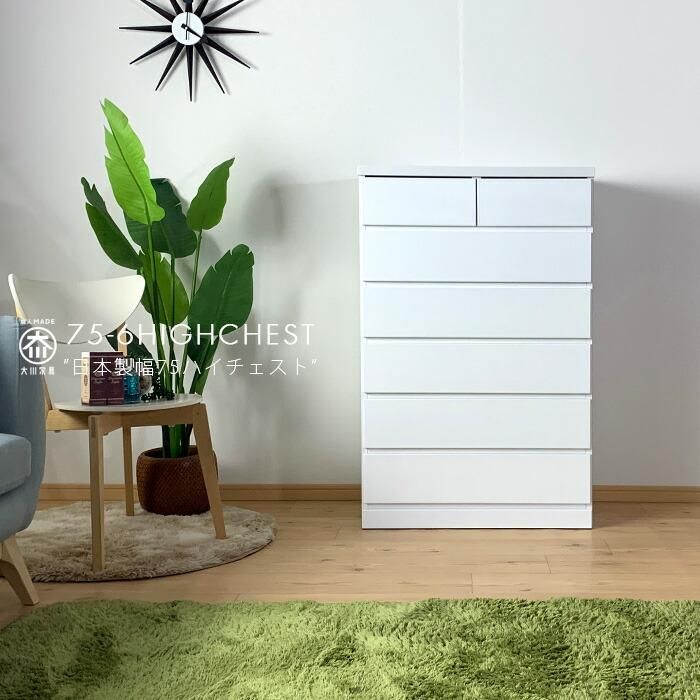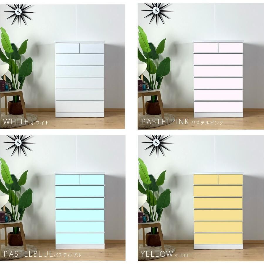チェスト 完成品 ハイチェスト 日本製 幅75 6段 カラフルチェスト 白 モダン ホワイト ピンク イエロー エナメル塗装 衣類タンス 大容量 大川家具 国産品