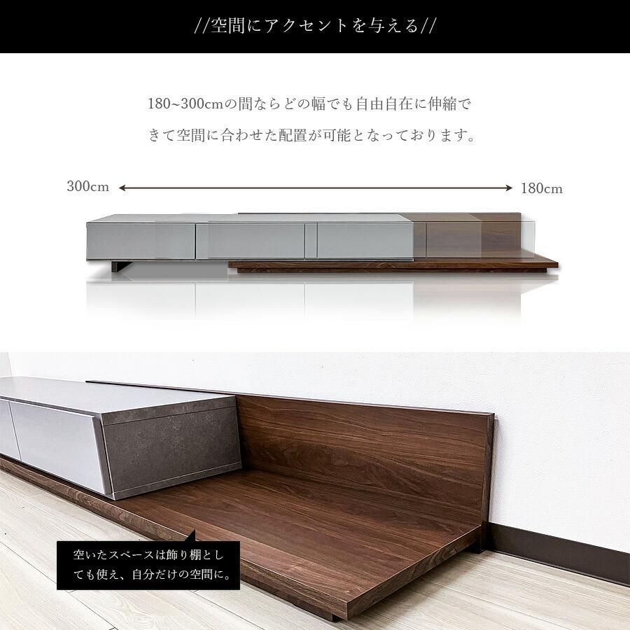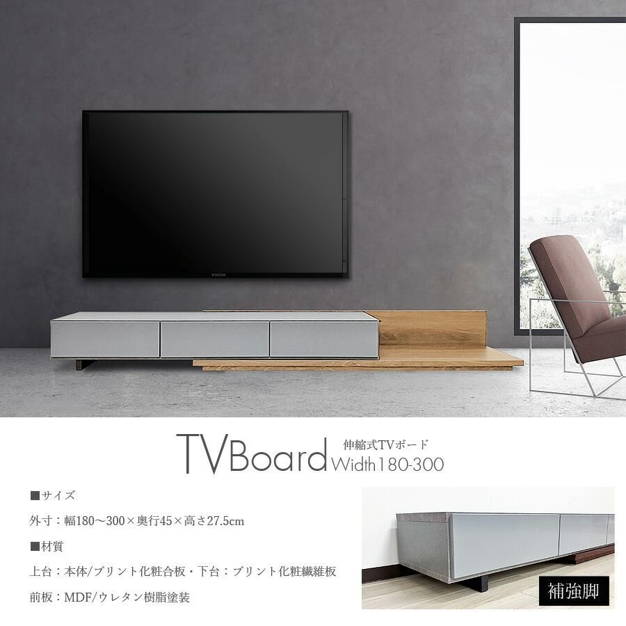 テレビ台 ローボード 幅180 テレビボード 幅300 北欧 伸縮タイプ おしゃれ 石目調 奥行45 長さ調節 リビング収納