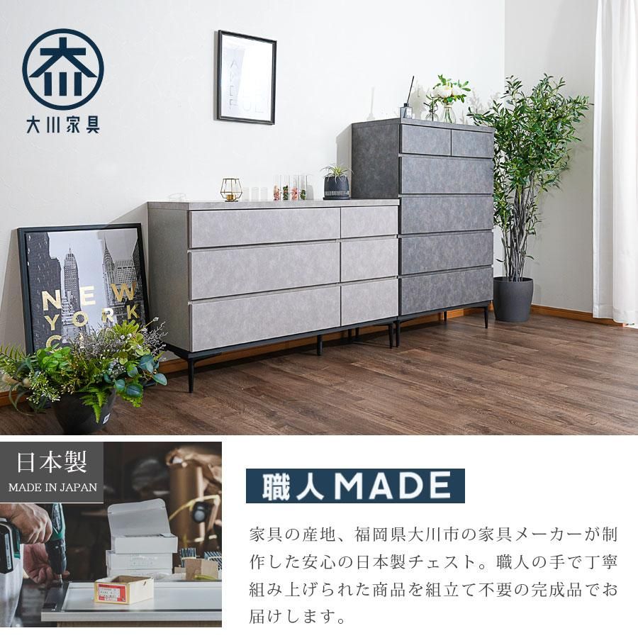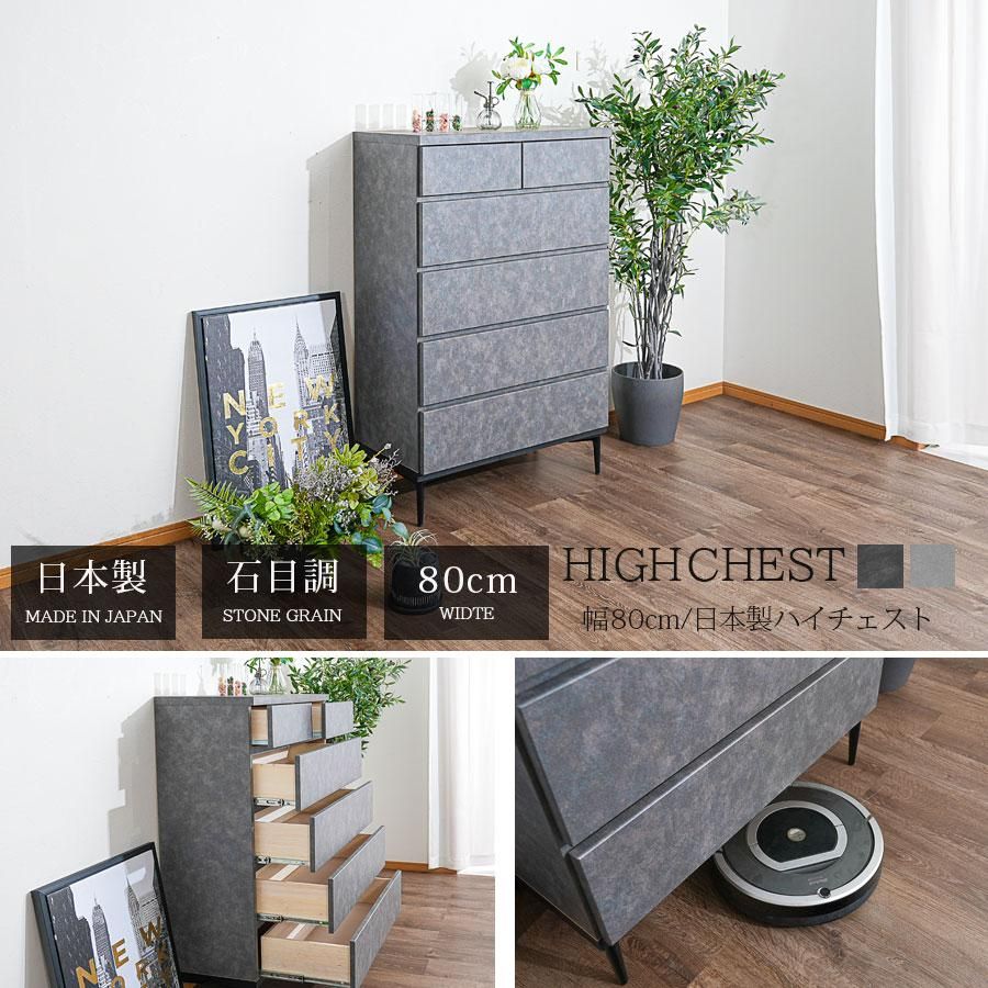 ハイチェスト モダン チェスト 幅80 タンス 箪笥 80幅 石目調 コンクリート調 3段 日本製 完成品 国産 衣類収納 整理たんす 脚付き