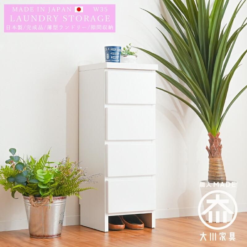 ランドリー収納 ランドリーチェスト 薄型収納 サニタリー 35幅 幅35cm 収納 チェスト 脱衣所 洗面所 すき間収納 家具 日本製 完成品 アウトレット価格並