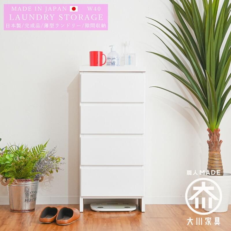ランドリー収納 ランドリーチェスト 薄型収納 サニタリー 40幅 幅40cm 収納 チェスト 脱衣所 洗面所 すき間収納 家具 日本製 完成品 アウトレット価格並