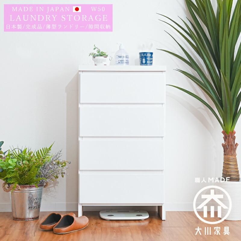 ランドリー収納 ランドリーチェスト 薄型収納 サニタリー 50幅 幅50cm 収納 チェスト 脱衣所 洗面所 すき間収納 家具 日本製 完成品 アウトレット価格並
