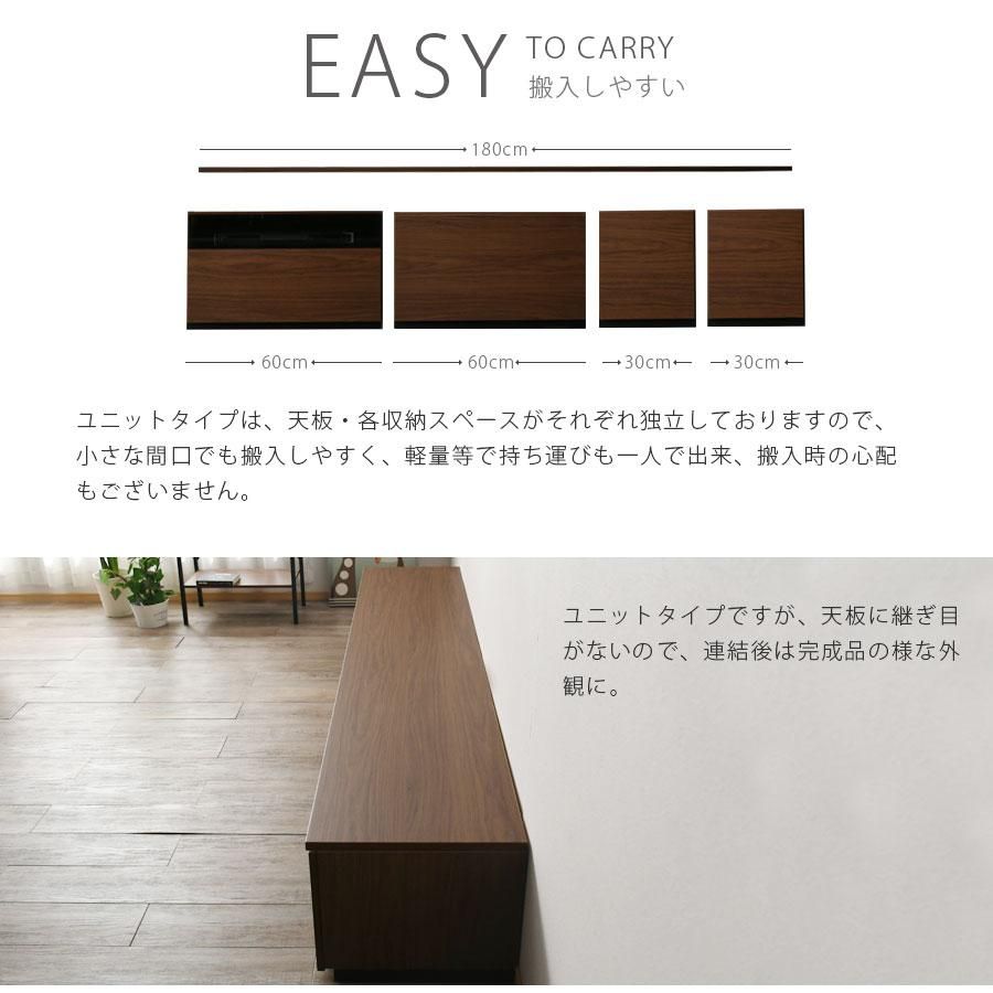 テレビ台 幅180cm テレビボード ブラウン グレー 日本製 完成品 180幅 ローボード 組み合わせ家具 ロータイプ 北欧 モダン 脚付 レイアウト 自由自在 大川家具