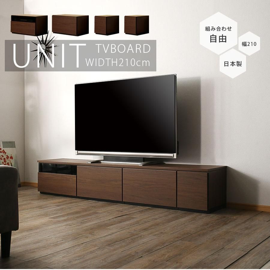 テレビ台 幅210cm テレビボード ブラウン グレー 日本製 完成品 210幅 ローボード 組み合わせ家具 ロータイプ 北欧 モダン 脚付 レイアウト 自由自在 大川家具