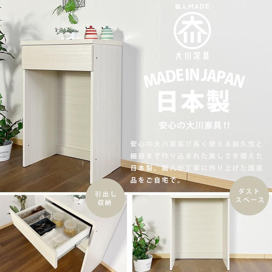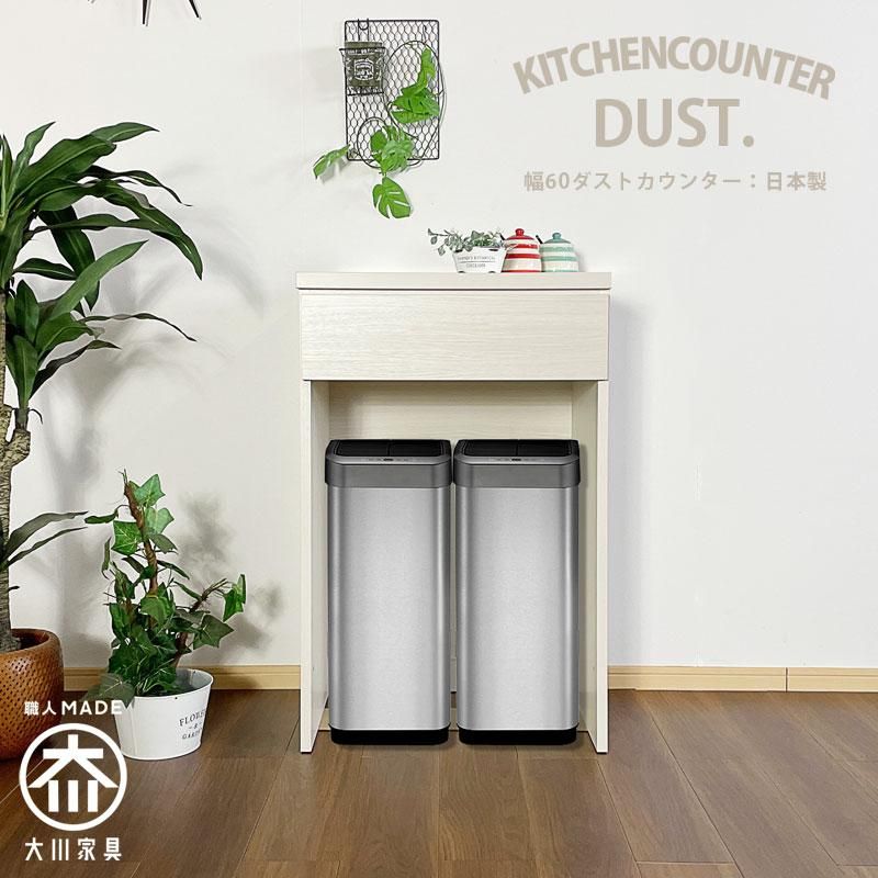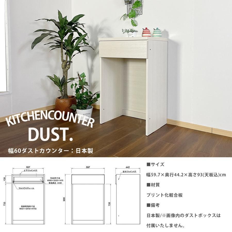 キッチンカウンター カウンター 日本製 国産 キッチン収納 オープンダスト収納 ゴミ箱収納 60幅 幅60cm 日本製 北欧 モダン カラー ホワイト 白 ブラウン