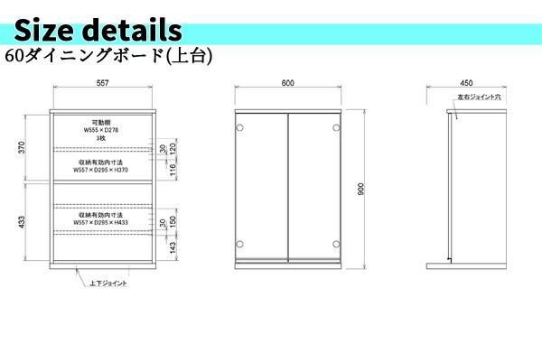 ダイニングボード 食器棚 日本製 国産 キッチン収納 60幅 幅60cm 日本製 北欧 モダン カラー ホワイト 白 ブラウン 棚板可動式 大川家具 アウトレット価格並