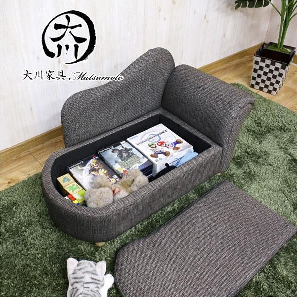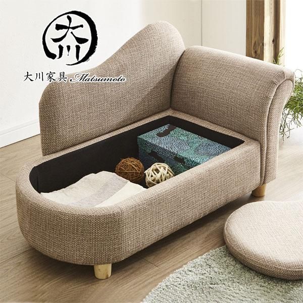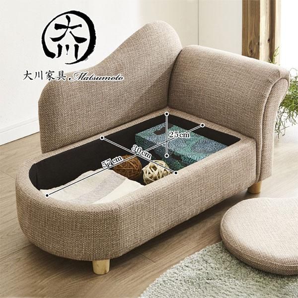 ソファ ソファー ジュニアソファ 2人掛け ローソファ フロアソファ 脚付き 足つき 木脚 布製 布張り ファブリック ベージュ グレー 収納付き 大川家具matsumoto 送料無料 楽天 通販