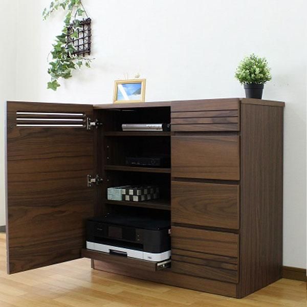 扉内部ににスライド棚が付いていて、プリンター 収納などに便利です