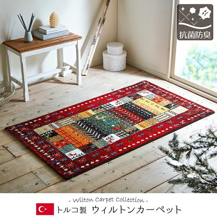 カーペット おしゃれ ラグ トルコ製 ウィルトン織り 長方形 ギャッペ調ラグ レッド アイボリー ブラウン ネイビー 約80×140cm 2畳未満