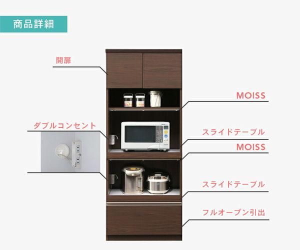 レンジ台 レンジボード キッチンボード 大型レンジ対応 70幅 幅70 オープンボード日本製 モイス付 耐震ラッチ コンセント付 選べる19色 北欧 モダン 大川家具