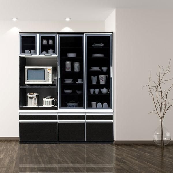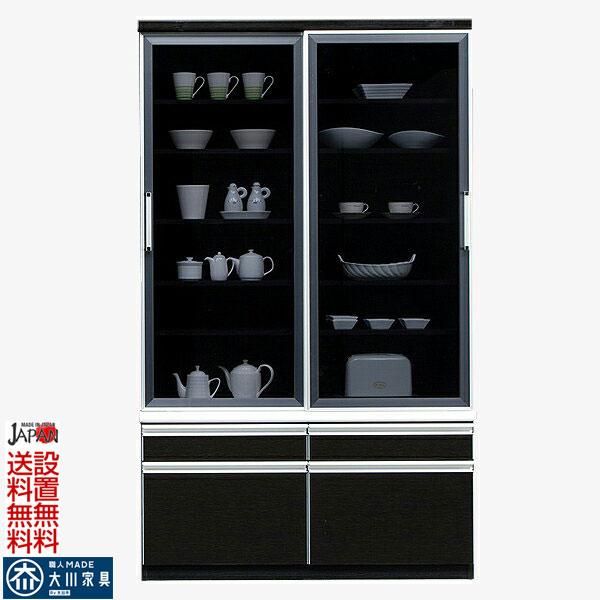 食器棚 ダイニングボード キッチンボード 120幅 幅120cm ガラス扉 カップボード 食器収納 国産 日本製 ブラック 高級家具 北欧 モダン 開梱設置無料 大川家具