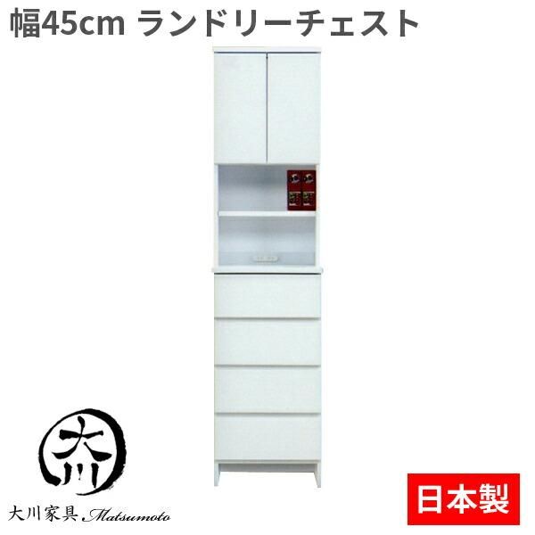 ランドリーチェスト 幅45 ランドリーラック 隙間収納 すきま収納 サニタリーラック 脱衣所 洗面所 すき間収納 国産 完成品 ホワイト 白 北欧 日本製 大川家具