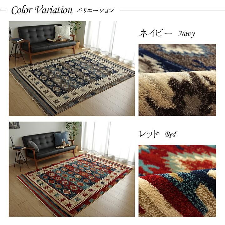 カーペット おしゃれ ラグ マット モルドバ ウィルトン 織り 畳める 約160×230cm 2畳 ネイビー レッド へたりにくい エスニック