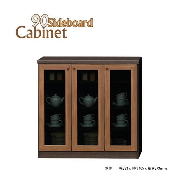 キャビネット サイドボード 90幅 幅40 高さ87 88 FAX台 電話台 カウンター 国産品 完成品 3枚扉 開戸 本棚 ガラス戸 ブラック おしゃれ 大川家具 高級 北欧