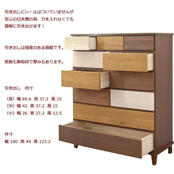 タンス チェスト ハイチェスト 幅100 6段 カラフル 完成品 子供部屋 国産 大川家具 日本製 箱組み 高級タンス 100幅 脚付き 脚 うずくり うづくり タンス
