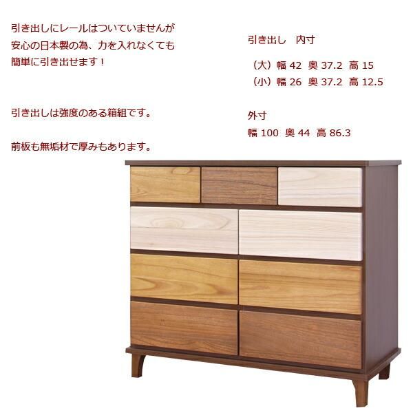 タンス チェスト 100幅 ローチェスト 4段 桐タンス 幅100 カラフル 大川家具 箪笥 日本製 脚付き 完成品 子供部屋 うずくり 無垢材 高級家具 収納