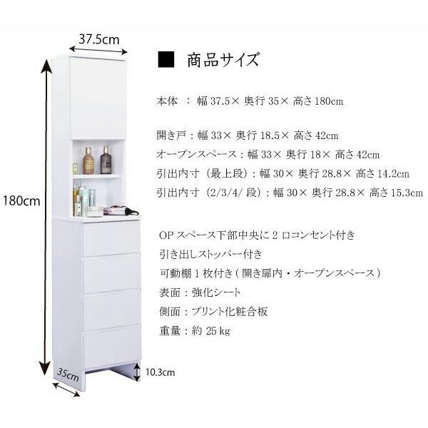 ランドリーラック サニタリー収納 隙間収納 すきま 幅37 サニタリー チェスト 脱衣所 洗面所 すき間収納 国産 完成品 日本製 ホワイト 白 大川家具