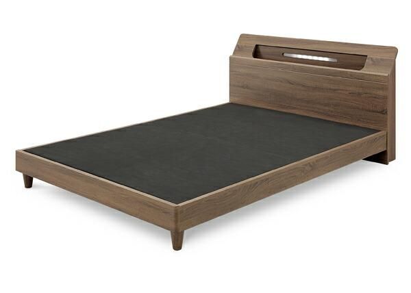 ベッド ベット ダブル ダブルベッド ベッドフレーム 140幅 幅140 LEDライト付 コンセント付 北欧 モダンブラウン色 背面化粧仕上げ 大川家具