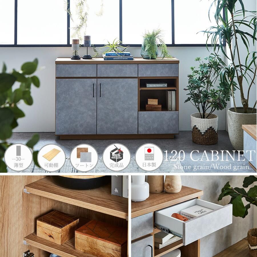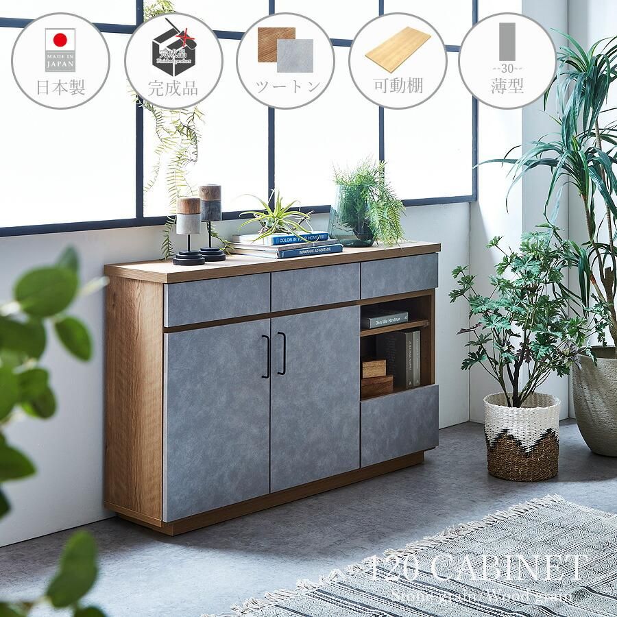 キャビネット サイドボード 日本製 完成品 幅120 リビング収納 北欧 おしゃれ 薄型