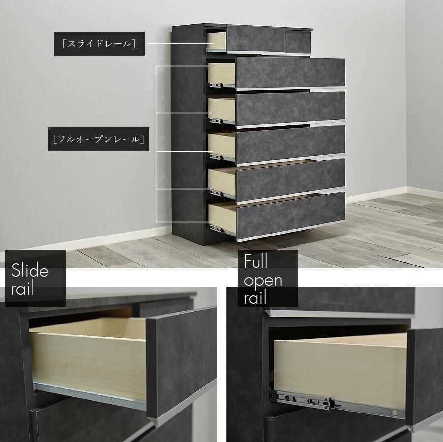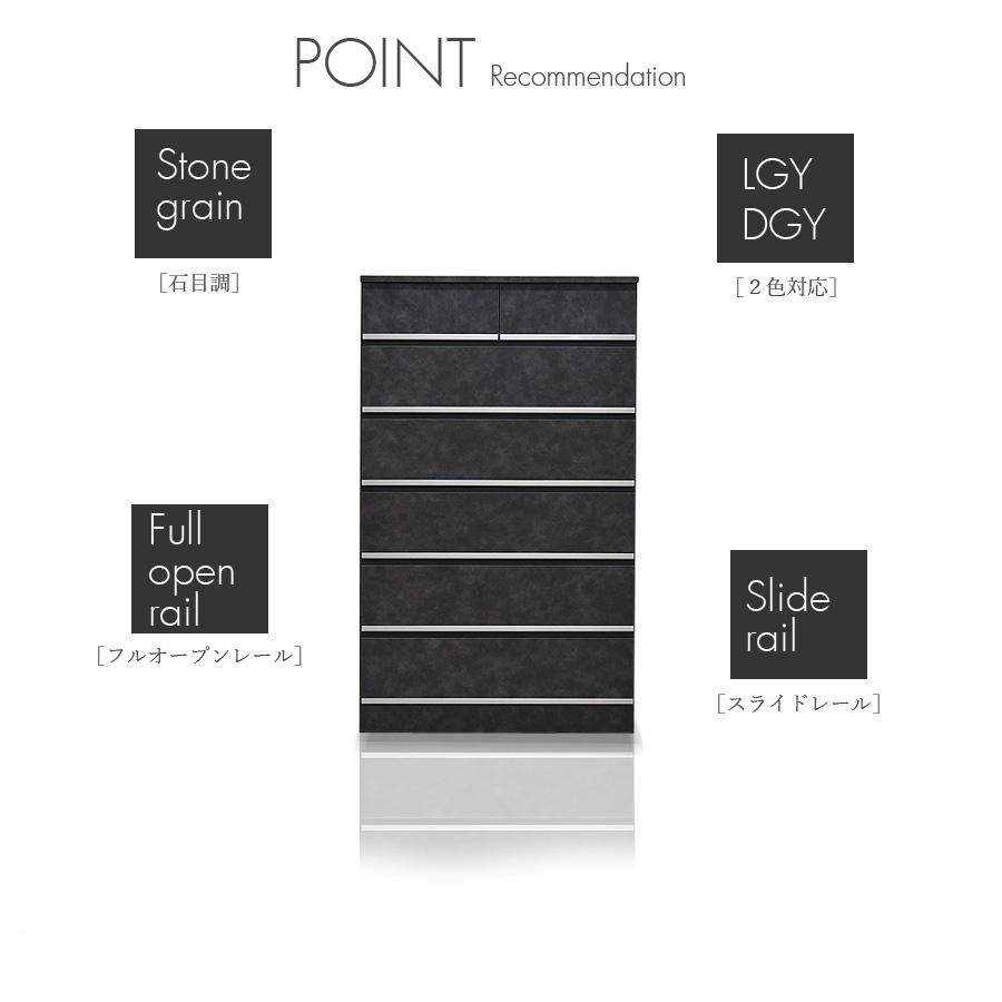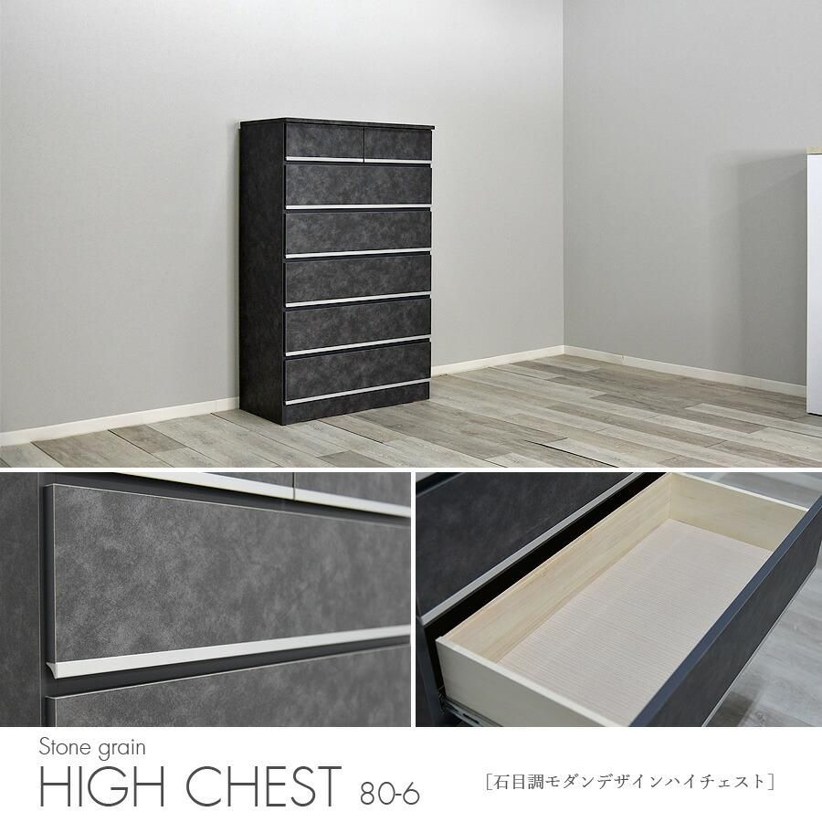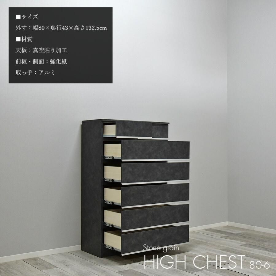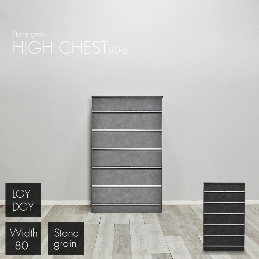 チェスト 完成品 ハイチェスト タンス 幅80cm 6段 日本製 グレー ダークグレー ライトグレー 高級感 石目調 石目柄