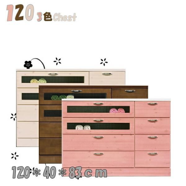 タンス チェスト ローチェスト 幅120 スライドレール付き 洋服ダンス 収納タンス 収納家具 整理ダンス 収納チェスト 国産 ピンク ホワイト ブラウン 無垢材 北欧
