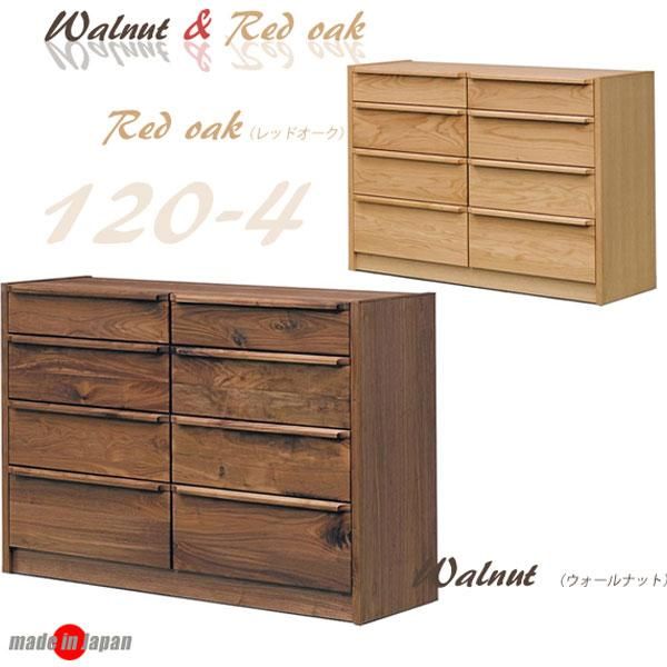 タンス 120幅 4段 チェスト ローチェスト 幅120 完成品 整理タンス 収納タンス 和風 収納家具 収納チェスト ウォールナット レッドオーク材 日本製