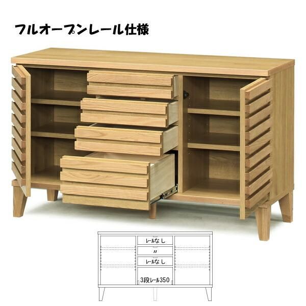 表面材に無垢材を使用した日本製脚付きサイドボードのご紹介です。