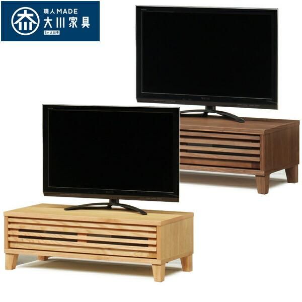 安価なTVボードとは違い、ルーバー(格子)部分には無垢材を使用した高級感あふれるテレビボードです
