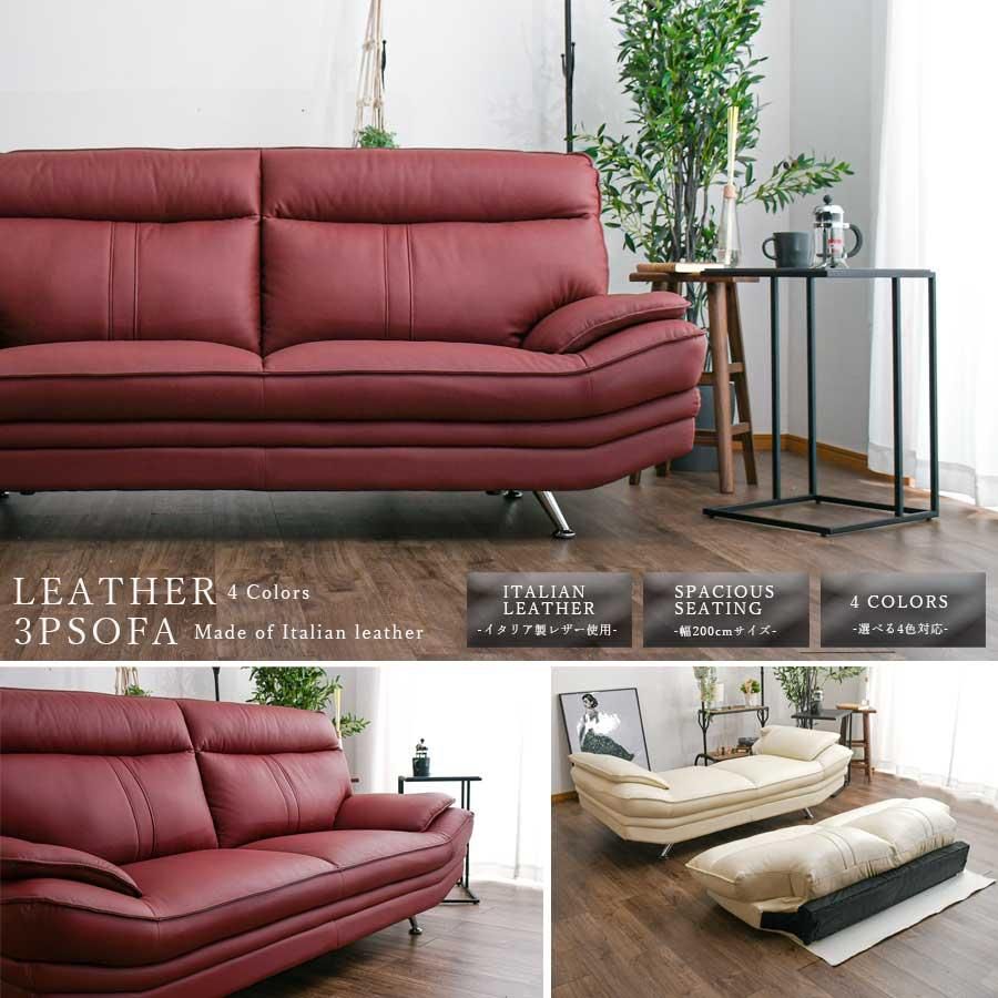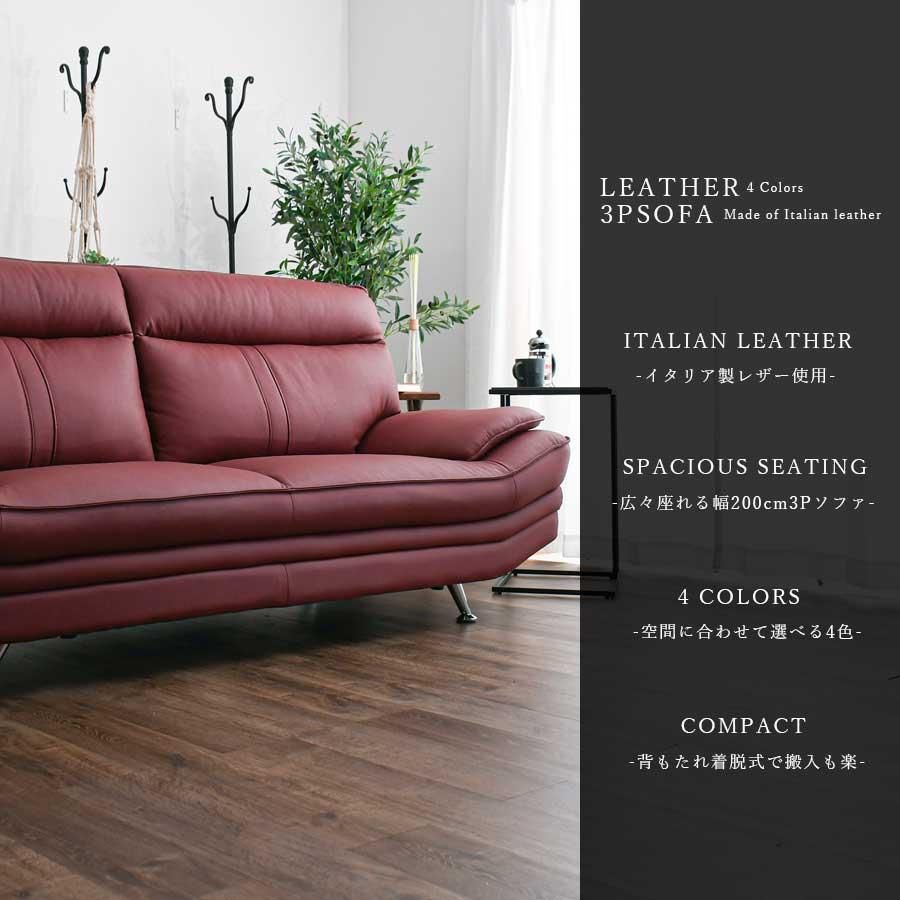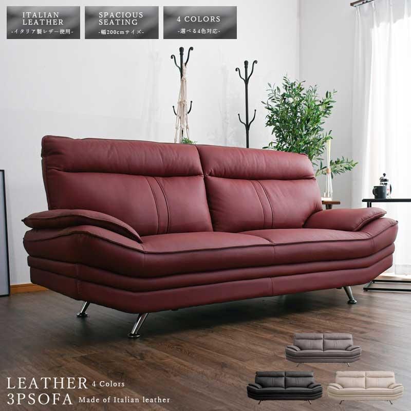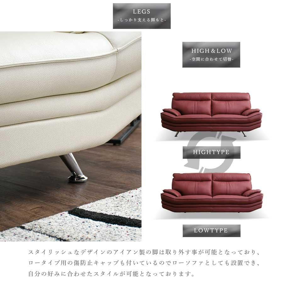 ソファ ソファー 3人用 3人掛け 3Pソファ ハイバック 本革 PVC 大きめ 幅200 脚付き ローソファ モダン 高級感