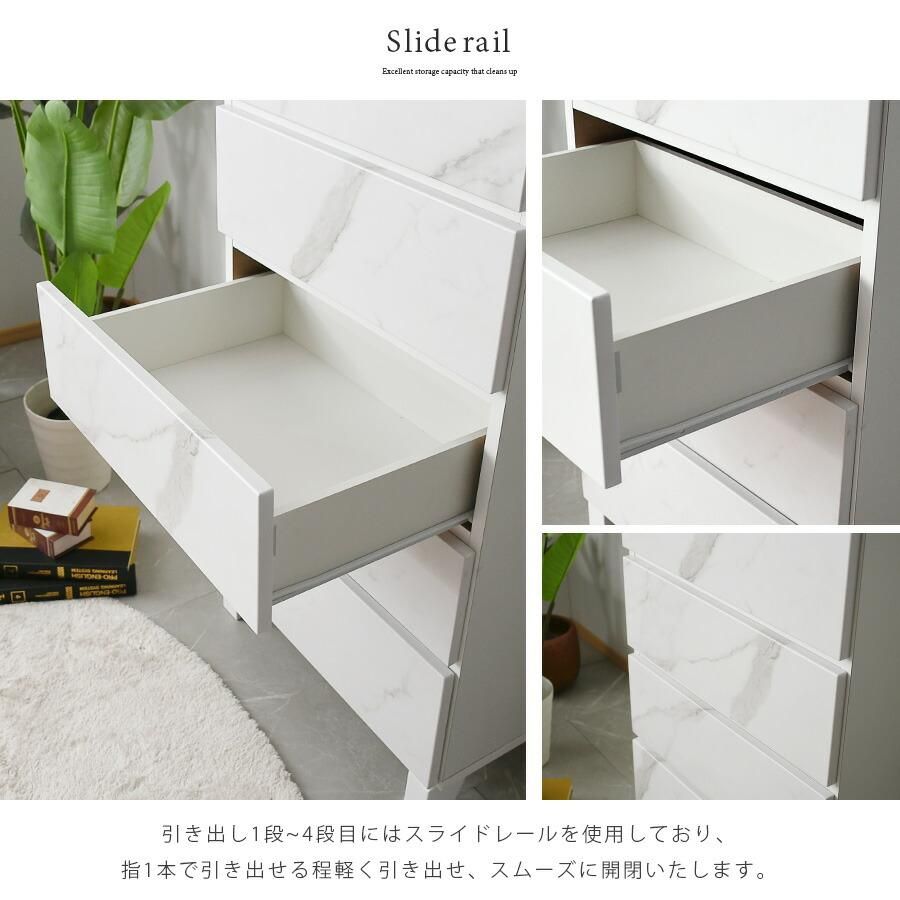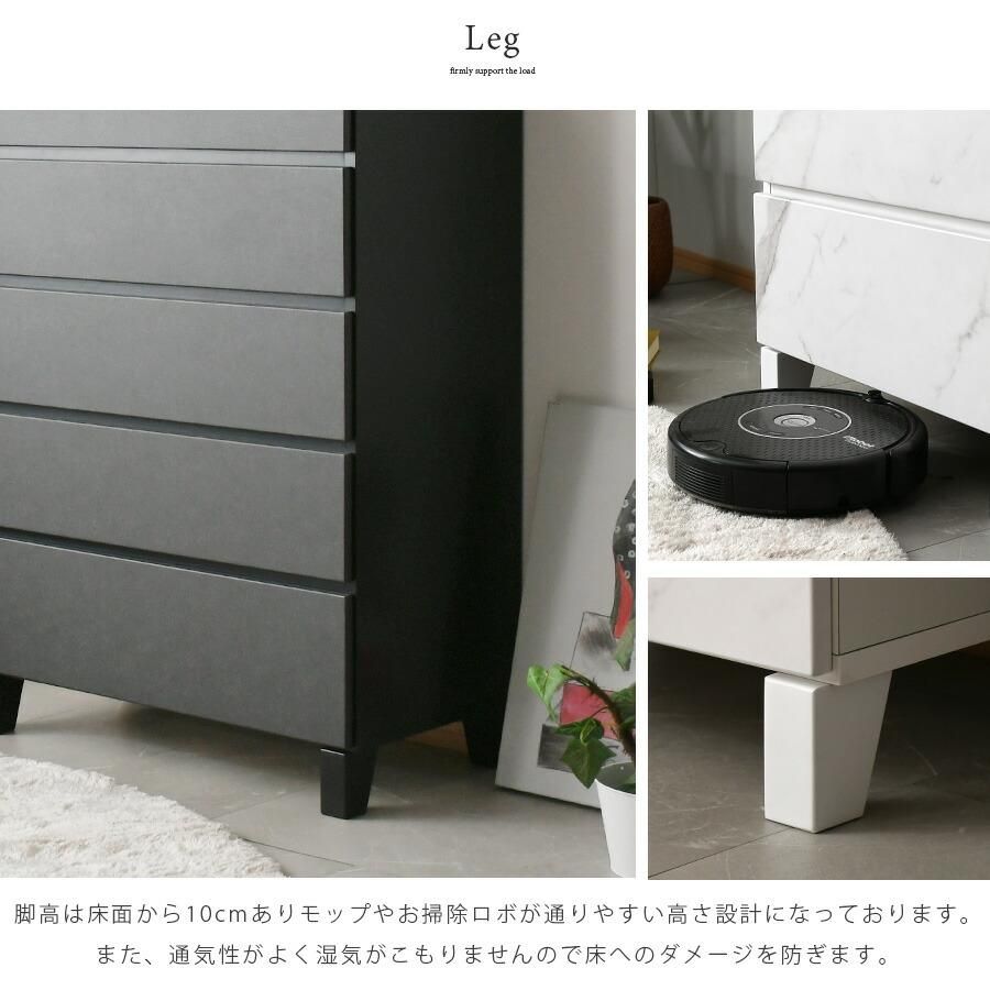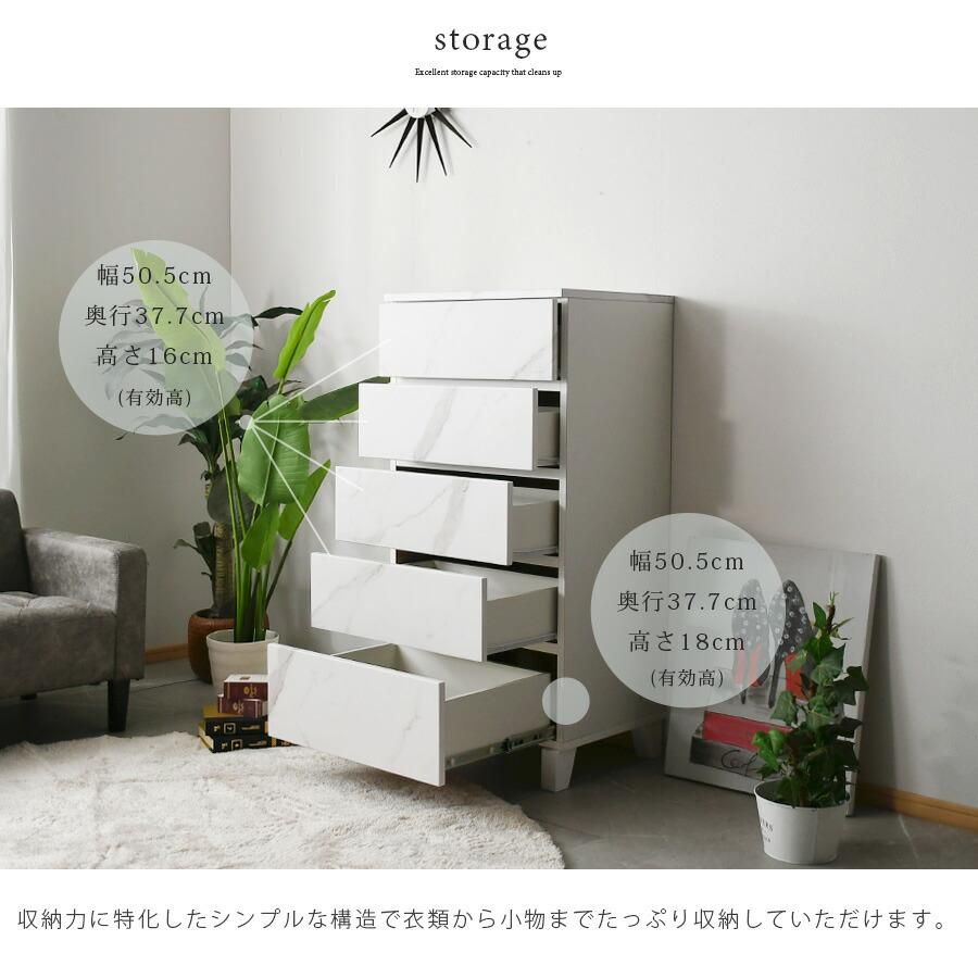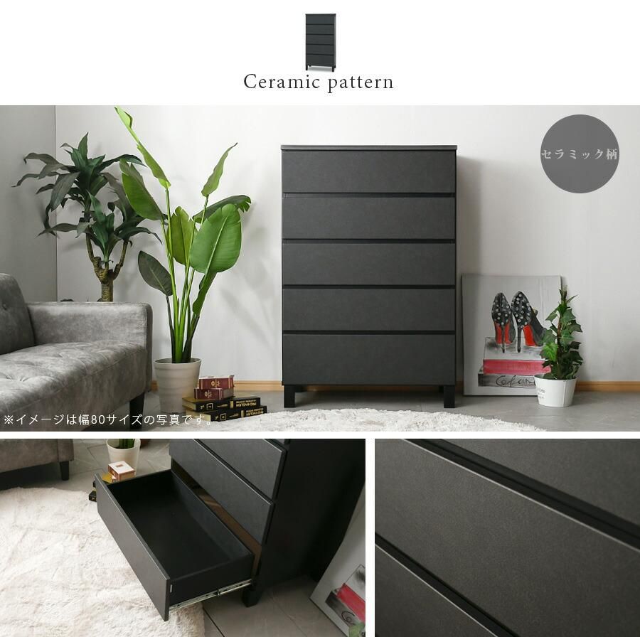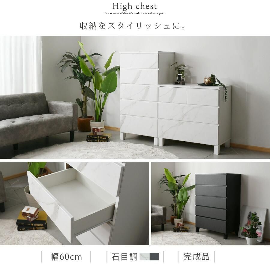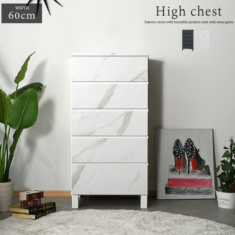 チェスト 完成品 ハイチェスト タンス 幅60cm 5段 ホワイト ブラック 石目調 石目柄 整理タンス 整理箪笥 衣類収納 洋服収納 セラミック柄 モダン