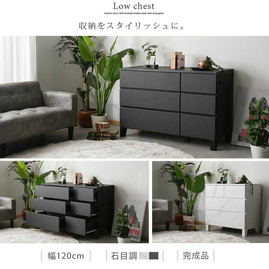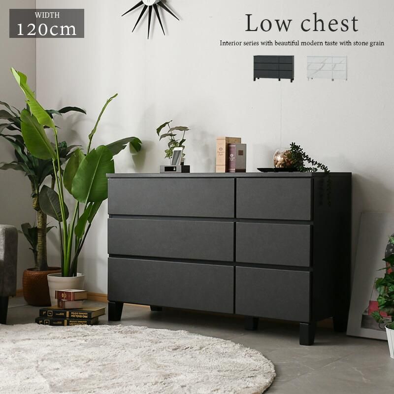 チェスト 完成品 ローチェスト タンス 幅120cm 3段 ホワイト ブラック 石目調 石目柄 整理タンス 整理箪笥 衣類収納 洋服収納 セラミック柄 モダン