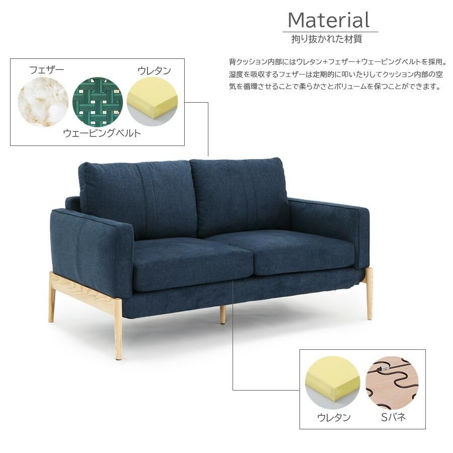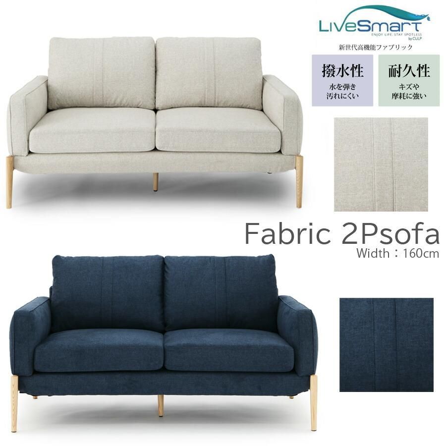 ソファ ソファー 2人用 2人掛け 北欧 おしゃれ 幅160 2Pソファ コンパクト 肘あり ファブリック 脚付き モダン 撥水 傷に強い ブルー アイボリー