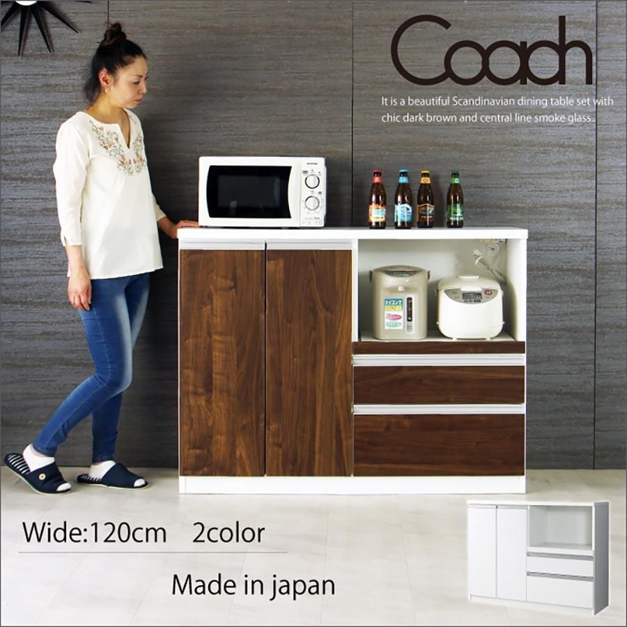 キッチンカウンター カウンター 120 レンジ台 幅120cm キッチン収納 キッチンボード 木目調 完成品 北欧 モダン 大容量 キッチン家電収納 大川家具