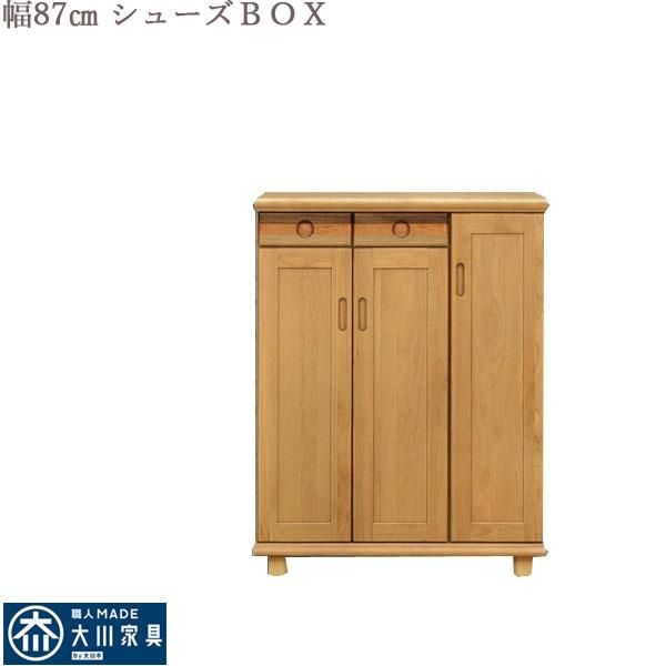 靴箱 無垢 下駄箱 ロータイプ 87幅 シューズボックス 大川家具 国産 シューズボックス 北欧 傘立て付 側面パイプ付 引出し付 オフィス