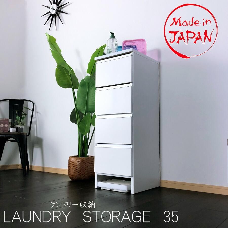 ランドリーラック サニタリー 35幅 幅35 収納 チェスト 脱衣所 洗面所 すき間収納 家具 国産 完成品 ホワイト 脱衣所チェスト 白 タオル収納 北欧
