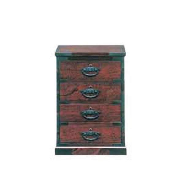 チェスト タンス 箪笥 ローチェスト 整理タンス 40幅 幅40cm 4段 小箱 小物入れ 和風 和民芸 和家具 鏡付 完成品 木製 ケヤキ突板 カラー等 赤茶色 大川家具