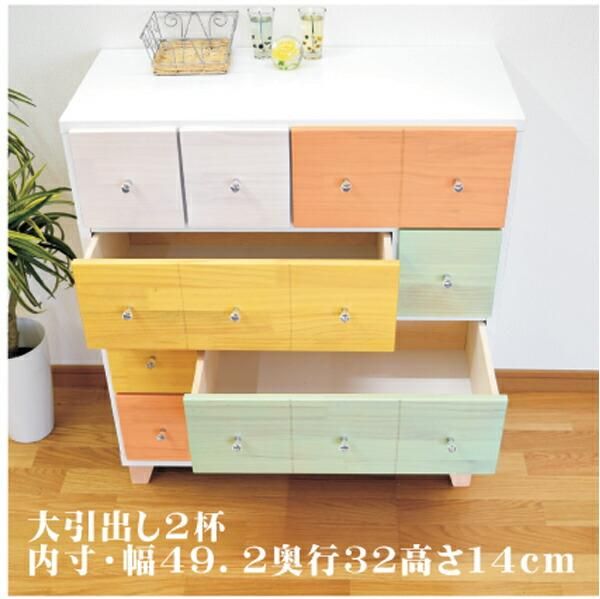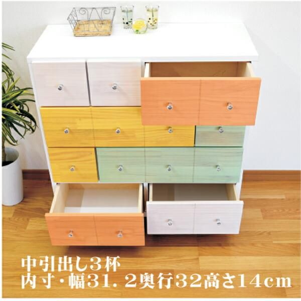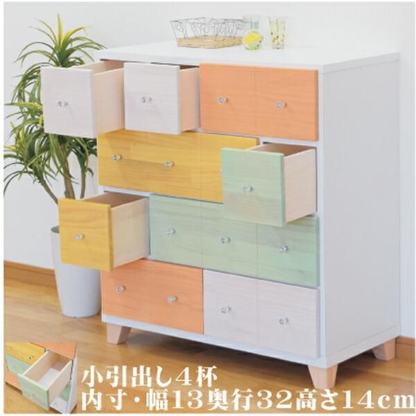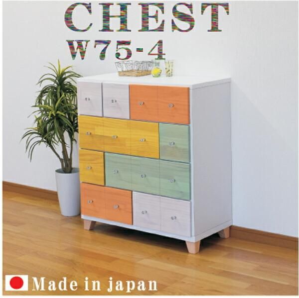 チェスト タンス 箪笥 ローチェスト カラフルチェスト 75幅 幅75 4段 整理たんす 脚付き 日本製 北欧 モダン カラフル パイン材 本体ホワイト 引出4色 大川家具