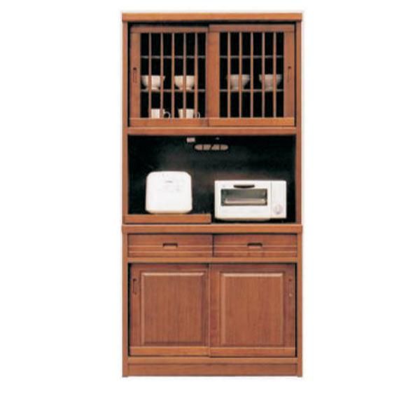 ダイニングボード レンジ台 食器棚 レンジボード キッチンボード 95幅 幅95 ガラス扉 スライドカウンター コンセント付 和風 モダン タモ材 大川家具