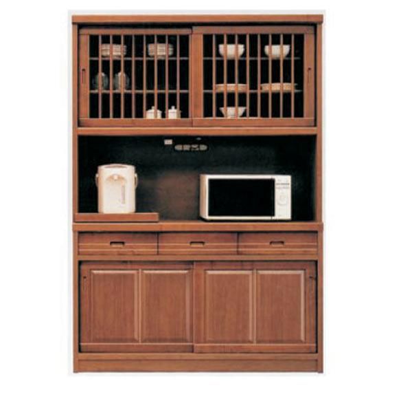 ダイニングボード レンジ台 食器棚 レンジボード キッチンボード 135幅 幅135 ガラス扉 スライドカウンター コンセント付 和風 モダン タモ材 大川家具