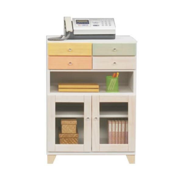 電話台 FAX台 キャビネット サイドボード リビングボード リビングチェスト 収納家具 木製 60幅 幅60 おしゃれ カラフル モダン 引出し4色 パイン材 大川家具
