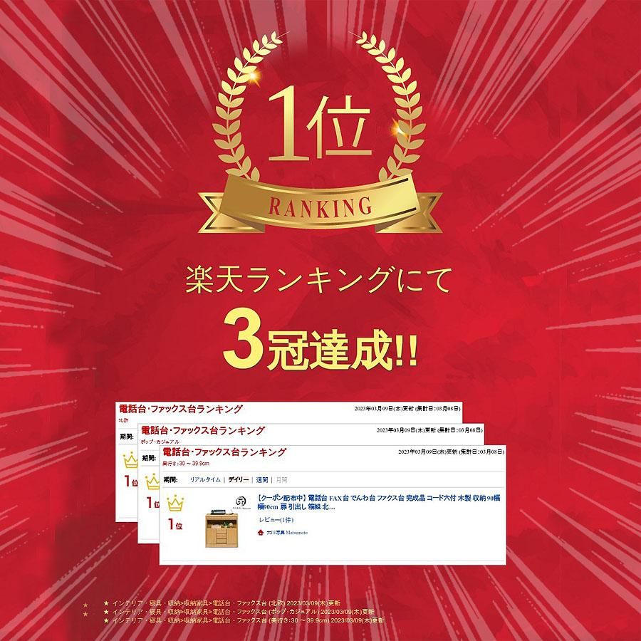 電話台 FAX台 でんわ台 ファクス台 完成品 コード穴付 木製 収納 90幅 幅90cm 扉 引出し 箱組 北欧 モダン ナチュラル ナチュラル色 インテリア 大川家具