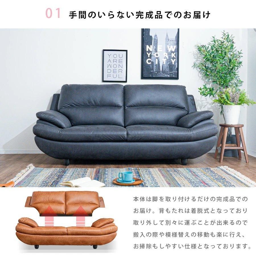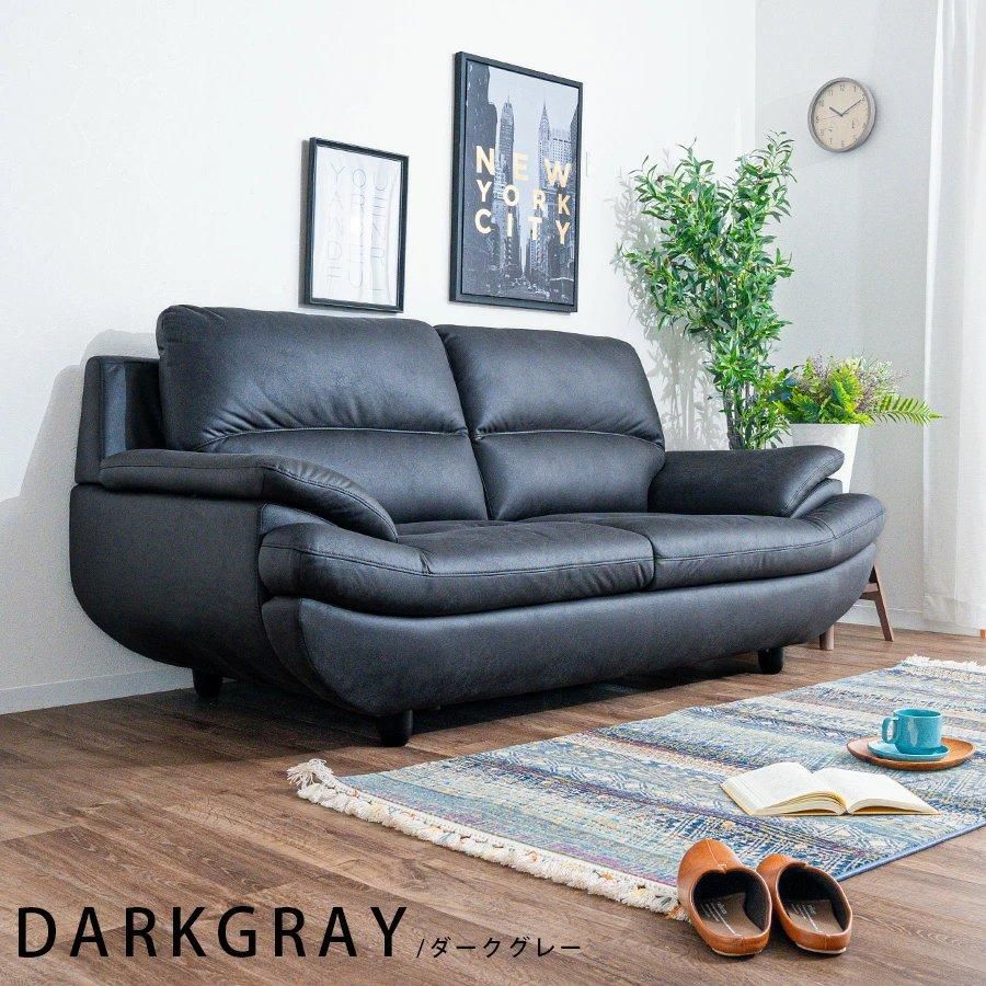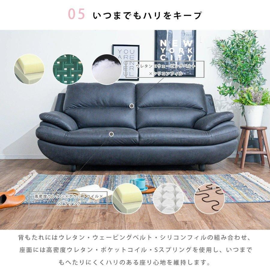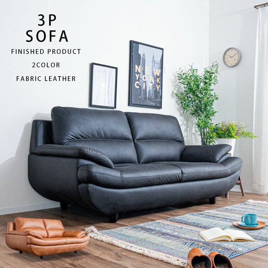 ソファ 3人掛け 脚付 ファブリックレザー キャメル ダークグレー ポケットコイル モダン 三人掛け 三人用 大川家具Matsumoto アウトレット価格並